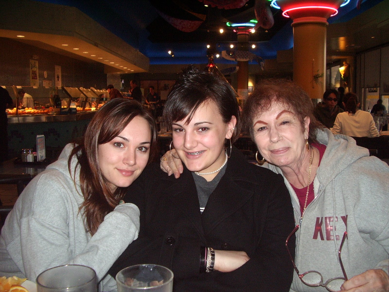 of our group while we there. We stayed at the Excalibur which has a great buffet. Erin, Jeffrey, Alex and Kevin: Kevin and Alex: Sarah, Emily and Grandma: Erin and Jeffrey: We went to the huge indoor aquarium at one of the hotels. Aunt Robyn is all the way on the right. I was jet lagged and cranky but by the time we got home again 5 days later we had re-adjusted to our own time zone. Thus